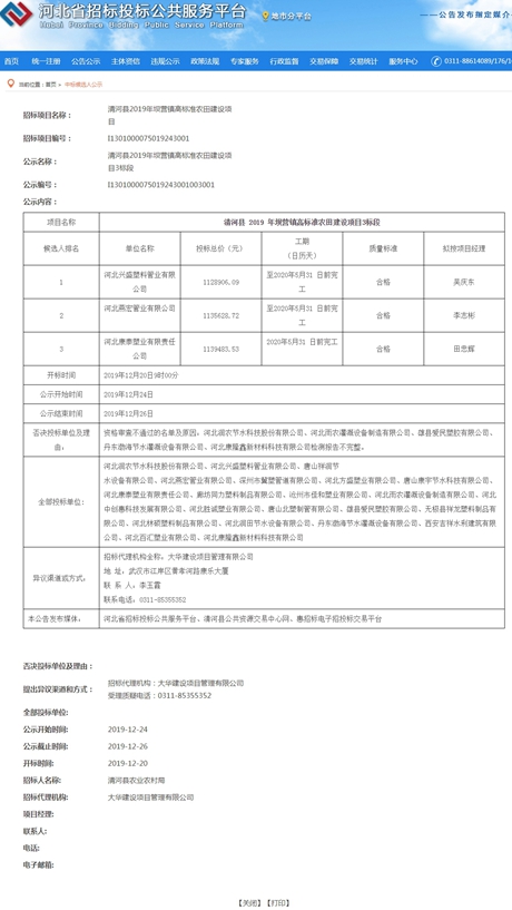 中標(biāo)公告-清河縣2019年壩營(yíng)鎮(zhèn)高標(biāo)準(zhǔn)農(nóng)田建設(shè)項(xiàng)目