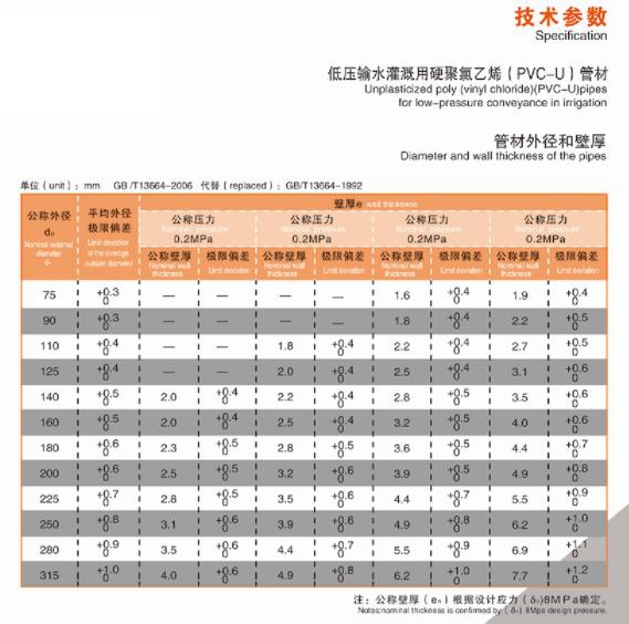 PVC-U low pressure irrigation pipe